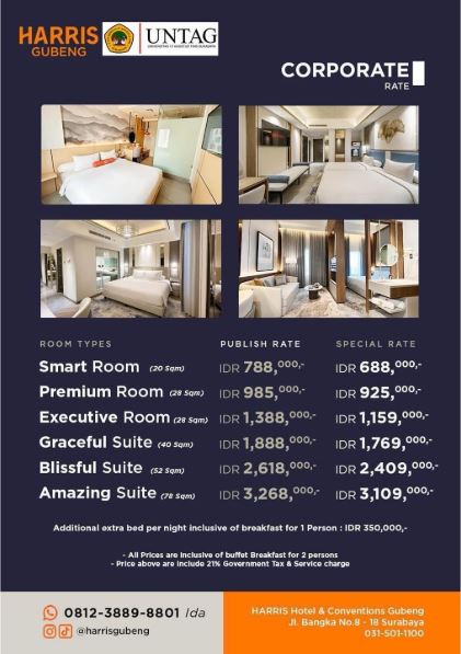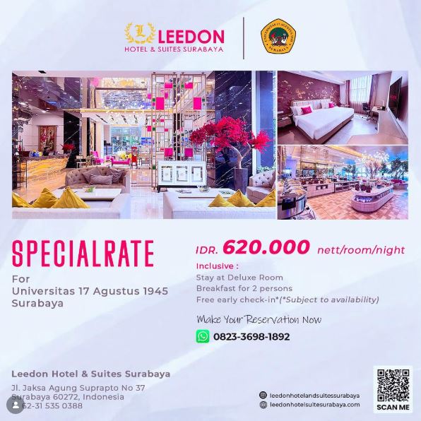 Manfaatkan fasilitas kerja sama spesial antara Untag Surabaya dan Leedon Hotel & Suites
