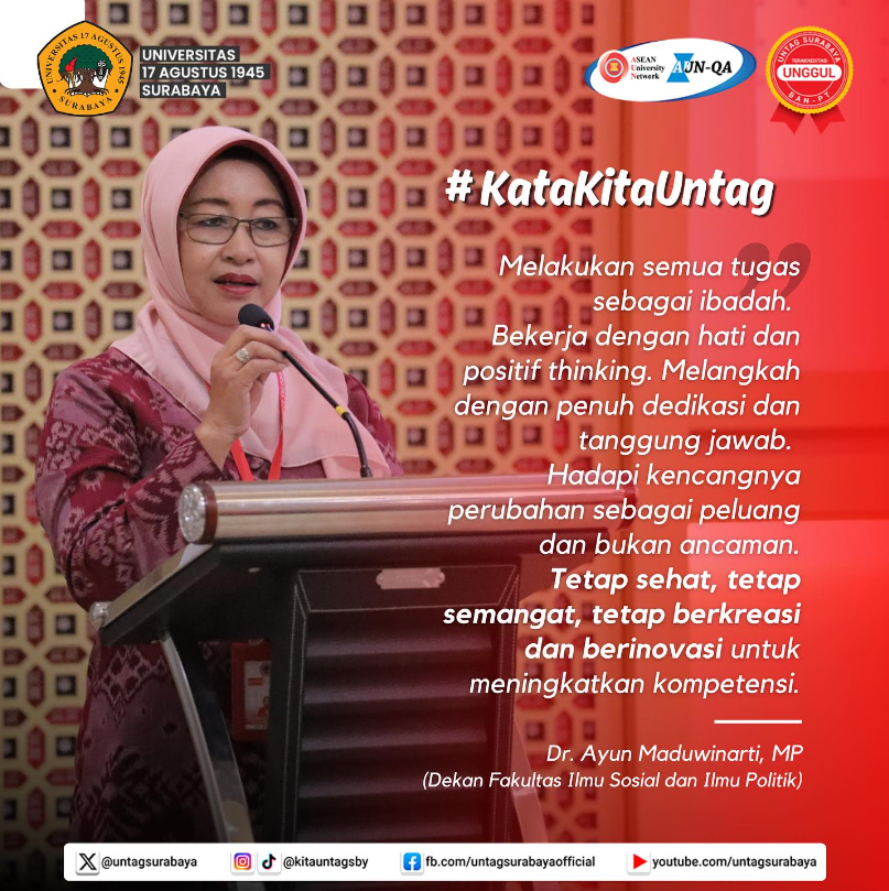 Universitas 17 Agustus 1945 (Untag) Surabaya kembali berduka. Minggu, (3/12) Guru Besar Fakultas Ilmu Sosial dan Ilmu Politik - Prof. Dr. Arif Darmawan, SU. berpulang. Selamat jalan ke Rahmatullah, Prof. Arif. Terima kasih atas ilmu, pengabdian, kebersamaan dan kerja kerasnya. Kami, civitas akademika Untag Surabaya akan meneruskan pengabdian kita hingga akhir masa...