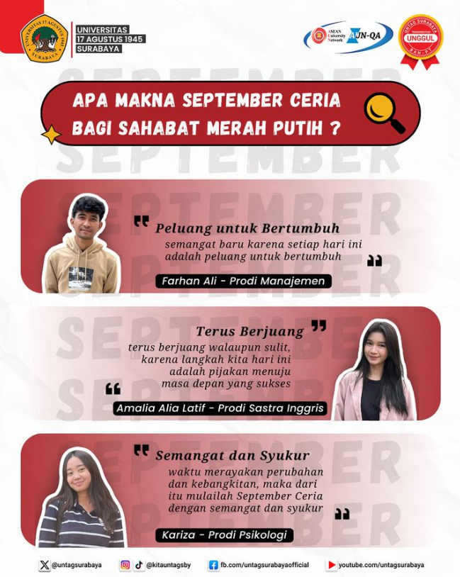 Halo, Sahabat Merah Putih! Bulan September sudah hampir berakhir nih, mari kita gunakan kesempatan ini untuk meraih pencapaian dan mengeksplor potensi diri Ini nih makna September Ceria bagi Sahabat Merah Putih! Kalau kamu gimana? Yuk bagikan di kolom...