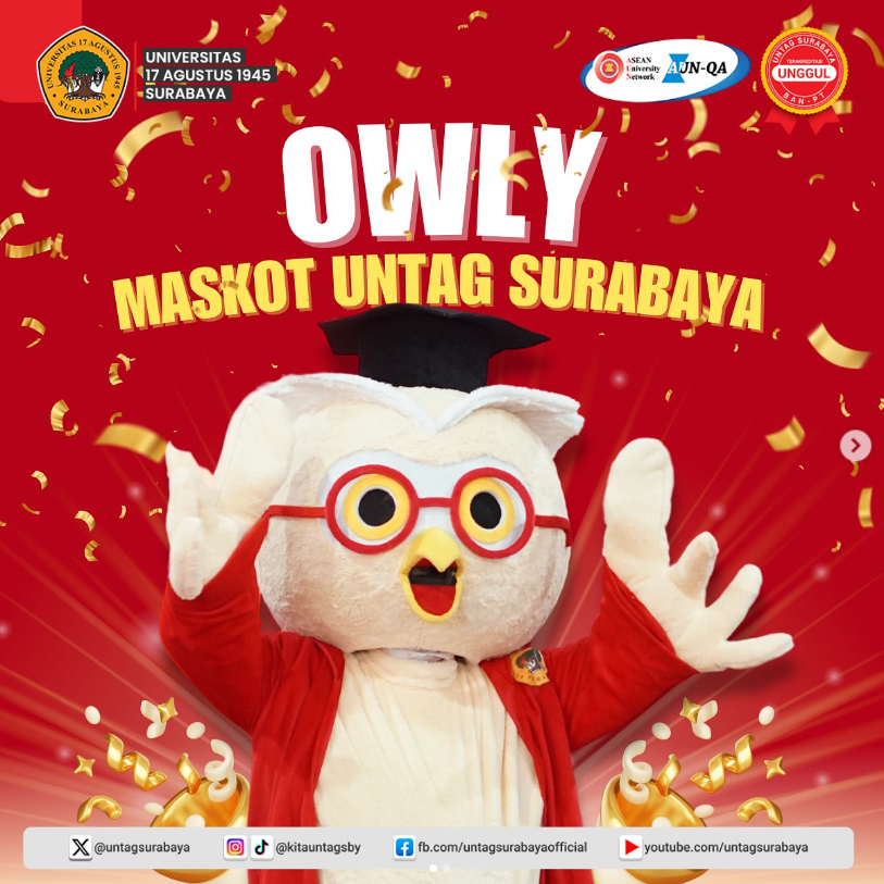 Halo, Sahabat Merah Putih! Kenalin nih, maskot Untag Surabaya seekor burung hantu yang diberi nama Owly. Artinya kebaikan, kepedulian, dan persahabatan Untag Surabaya melakukan relaunching maskot ini pada kegiatan PKKMB 2024 lalu. Yuk simak penjelasannya pada slide...