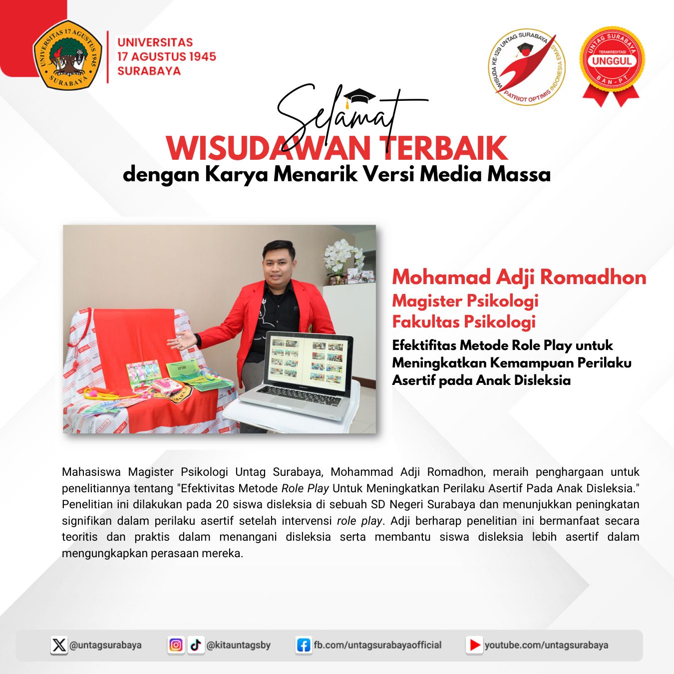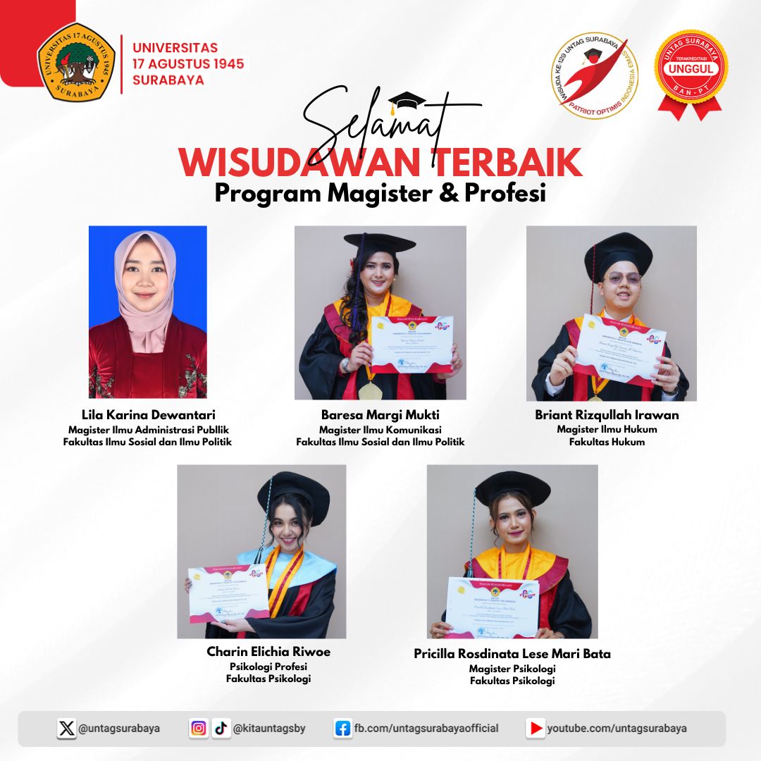 Selamat kepada Wisudawan Terbaik Program Magister dan Profesi Universitas 17 Agustus 1945...