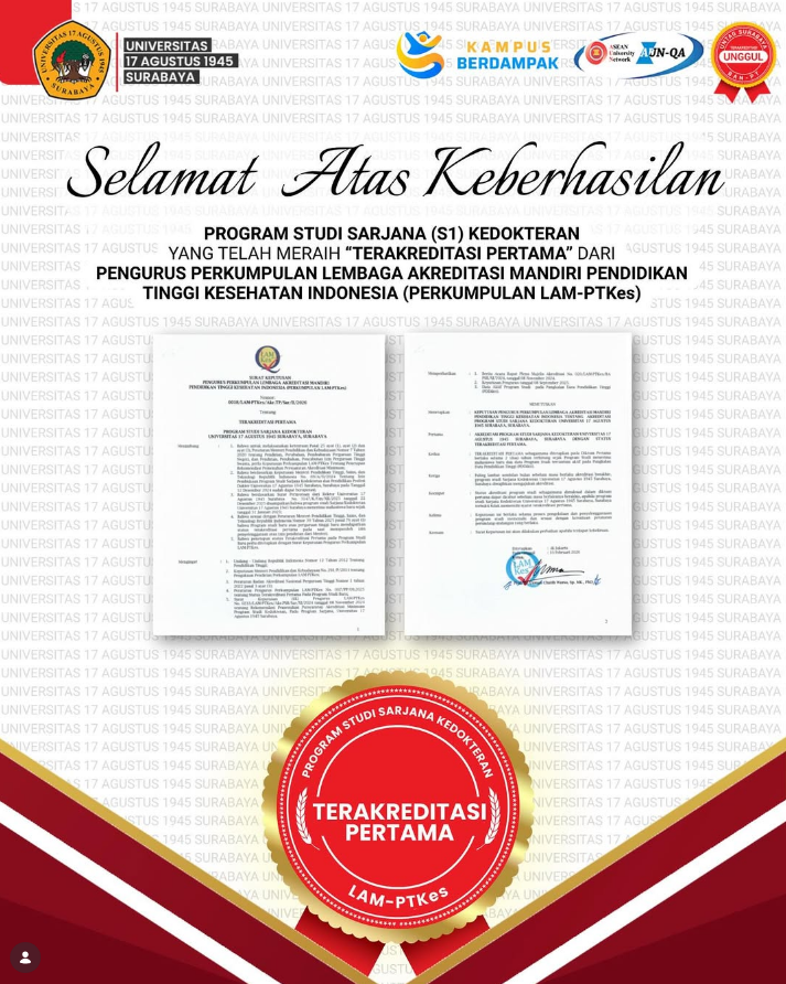 Selamat dan sukses untuk Program Studi Sarjana Kedokteran yang telah resmi meraih Terakreditasi Pertama dari Pengurus Perkumpulan Lembaga Akreditasi Mandiri Pendidikan Tinggi Kesehatan Indonesia (Perkumpulan LAM-PTKes) Pencapaian ini merupakan wujud nyata dari kerja keras, dedikasi, dan komitmen seluruh civitas akademika dalam menjaga serta meningkatkan mutu pendidikan. Semoga keberhasilan...